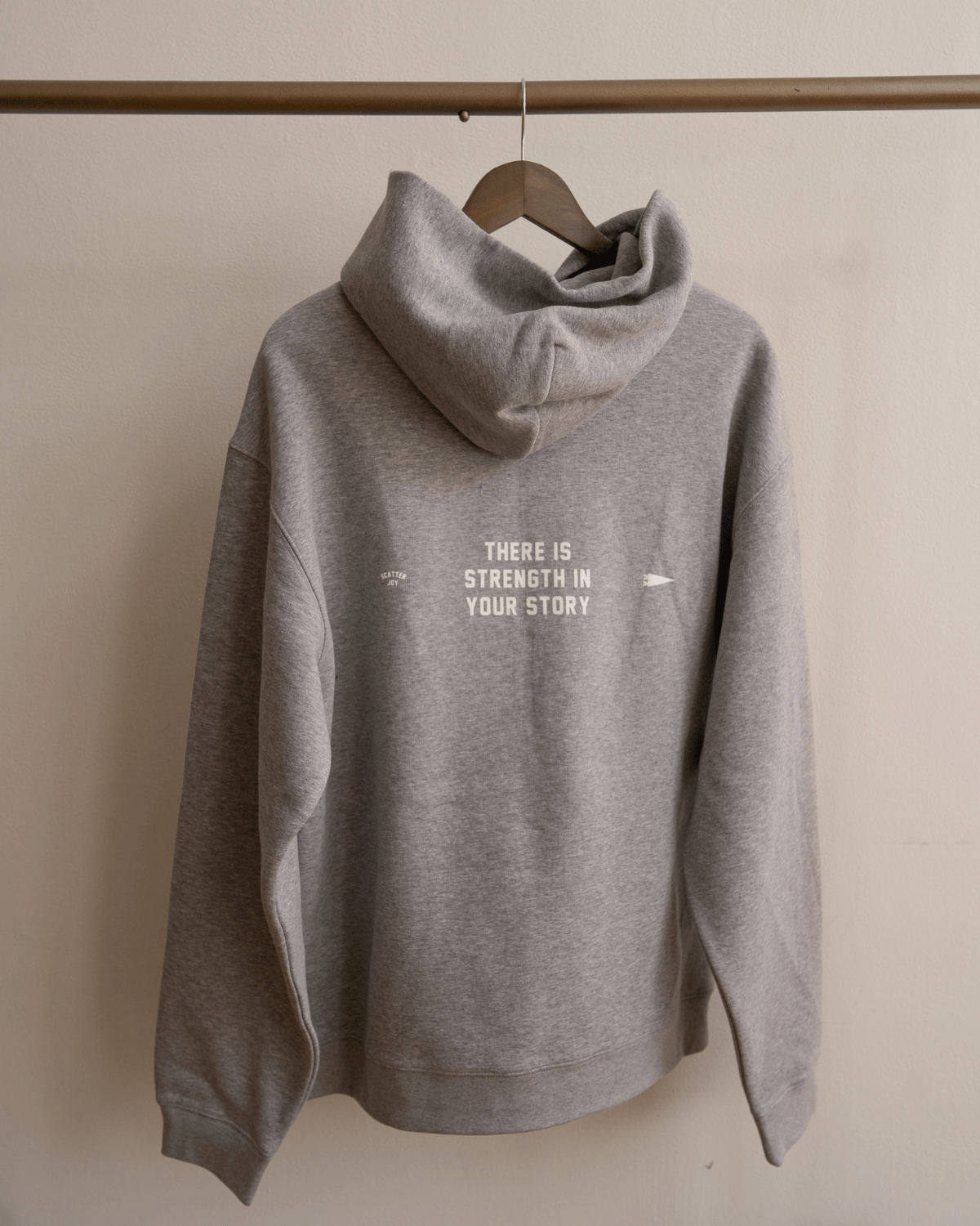 Soft, intentional, and rooted in meaning, the There Is Strength in Your Story Heather Gray Hoodie was created for those who know healing isn’t linear. With a clean “Scatter Joy” logo on the front and the full phrase printed across the back, this piece invites reflection without demanding attention.